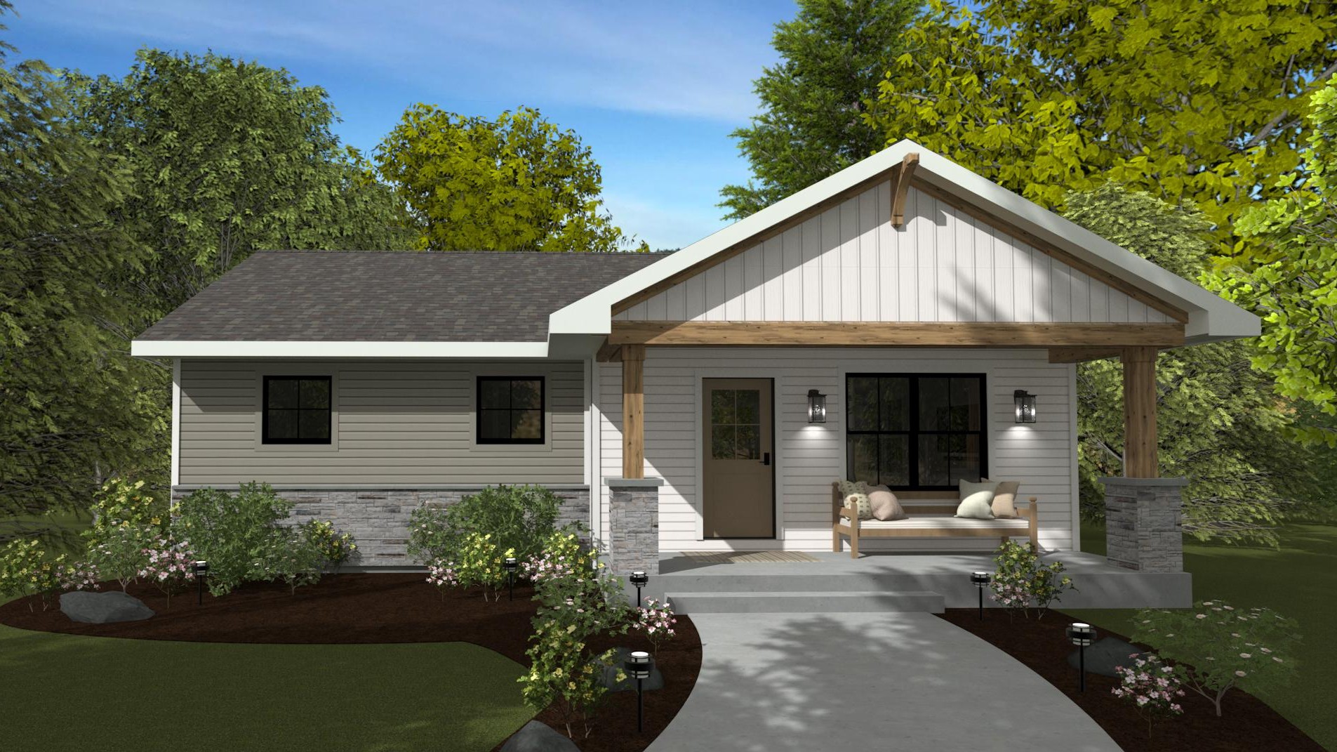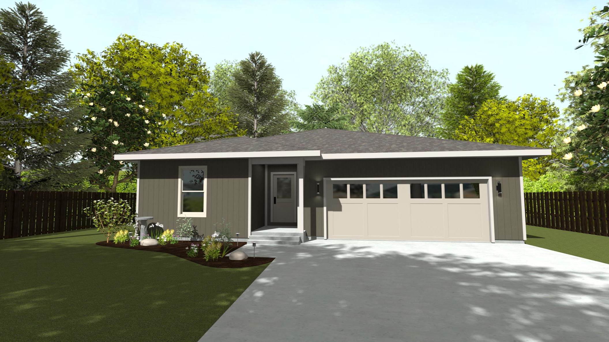 A part of our dream series, the tamarack floor plan features 3 bedrooms and 1.5 bathrooms with a foot print of 44x30 feet and 1342 total square feet of living space.