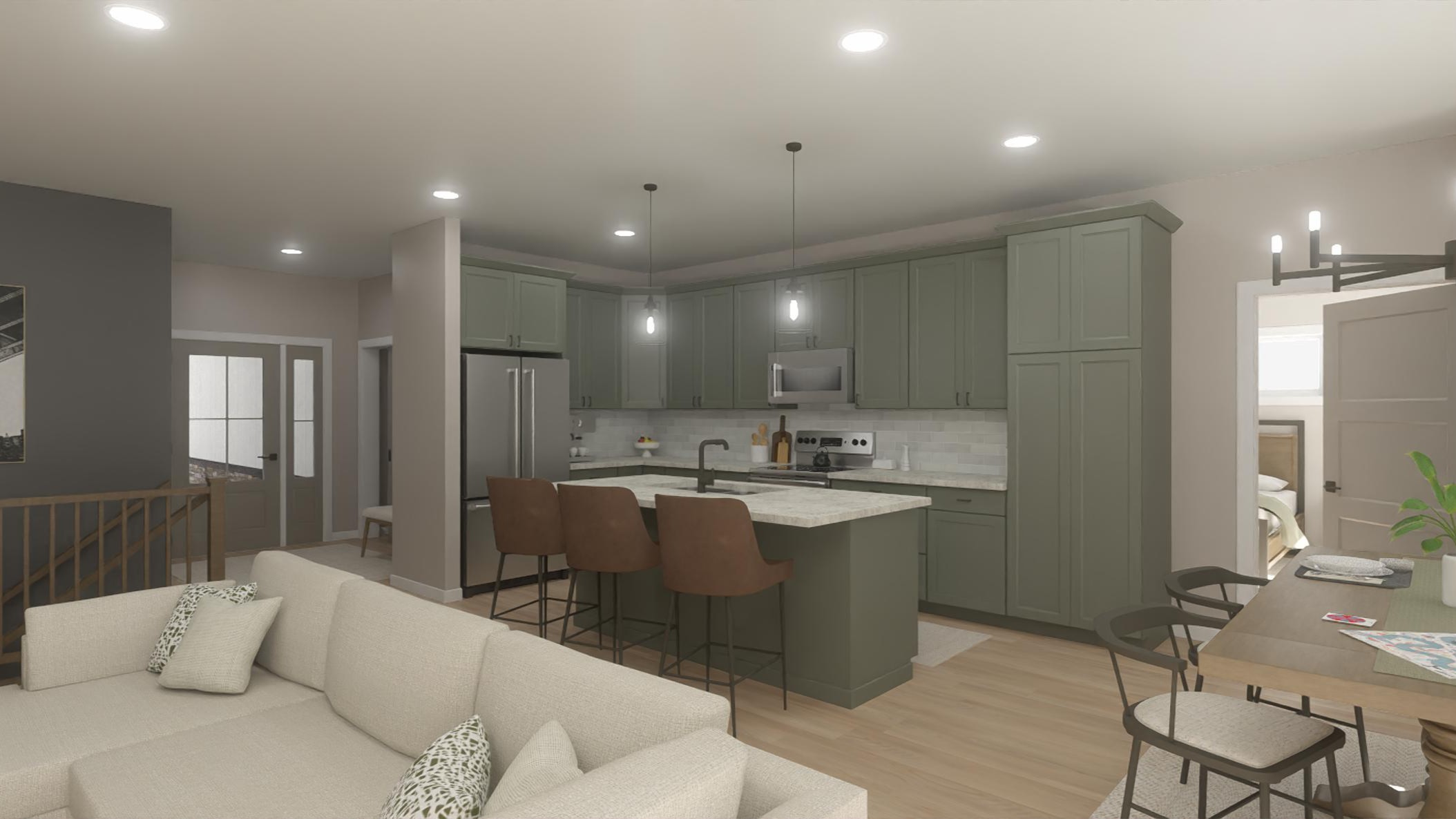 Open-concept living areas create a natural flow between the kitchen, dining, and living spaces, making entertaining and everyday living effortless. Additional customization options allow you to further personalize the home, including adding a back deck, a fireplace with built-in shelving, or a built-in dining nook for added character and comfort.